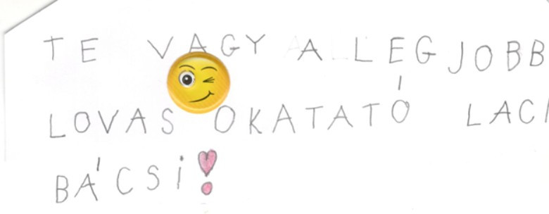 A Donkó család minden tagja lovagol Anya, Apa és két fiú gyermekük. Beliántól kaptam a "Laci bácsi a legjobb oktató!" Saját kezével készített kitüntetést.